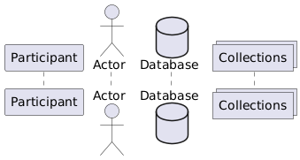 @enduml使用するオブジェクトやクラスを表す。利用者(Actor)、オブジェクトやクラス(Participant)、データベース(Database)、集合(Collections)がある。